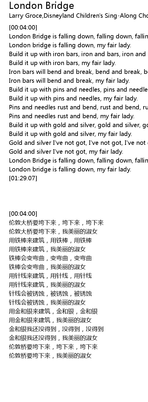 London bridge is falling down, my fair lady. |