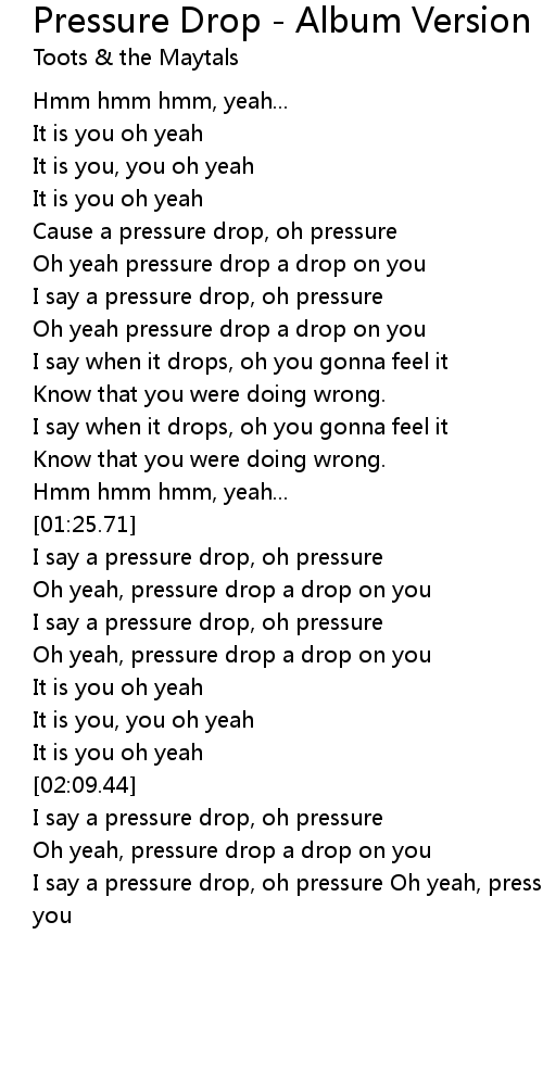 I say a pressure drop, oh pressure Oh yeah, pressure drop a drop on you |