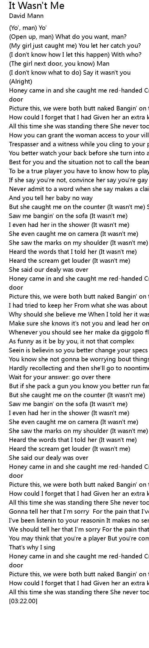 It Wasn't Me Lyrics