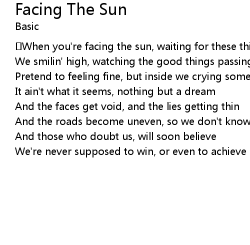 | Song | Facing The Sun |