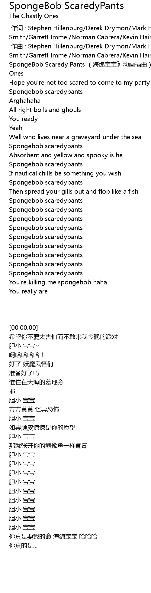 | [00:00.00] | SpongeBob Scaredy Pants hai mian bao bao dong hua cha qu The Ghastly Ones |