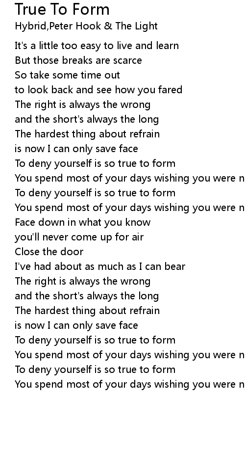 True To Form Lyrics