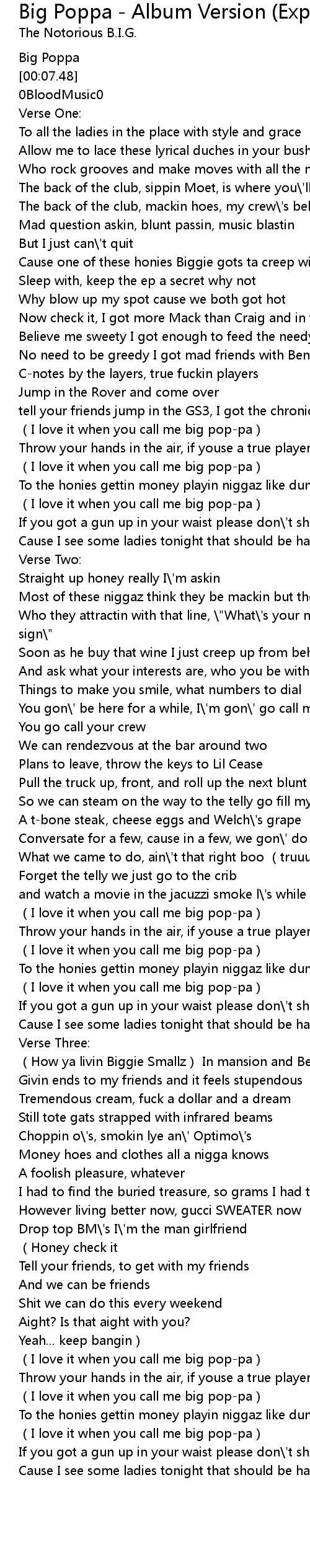 | [00:06.52] | Big Poppa |