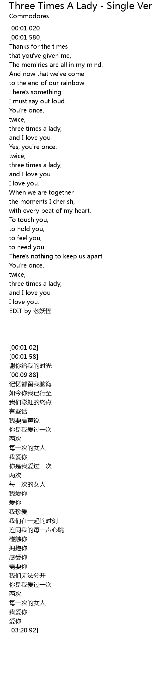 | [00:50.590] | three times a lady, |
