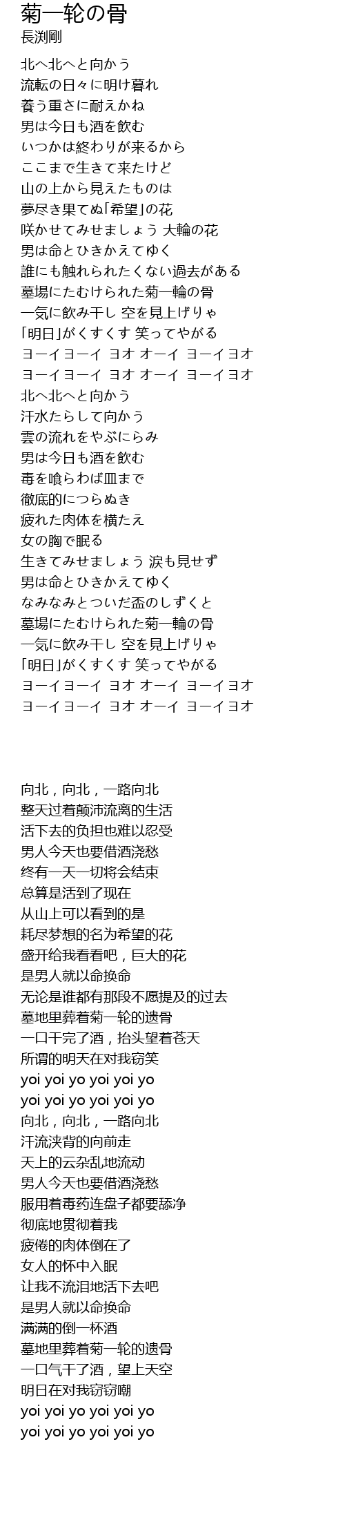 | [03:58.786] | 墓場にたむけられた菊一輪の骨 |