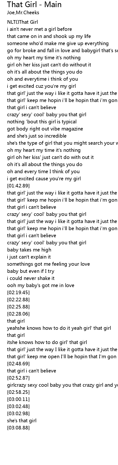 | [01:01.21] | crazy' sexy' cool' baby you that girl |