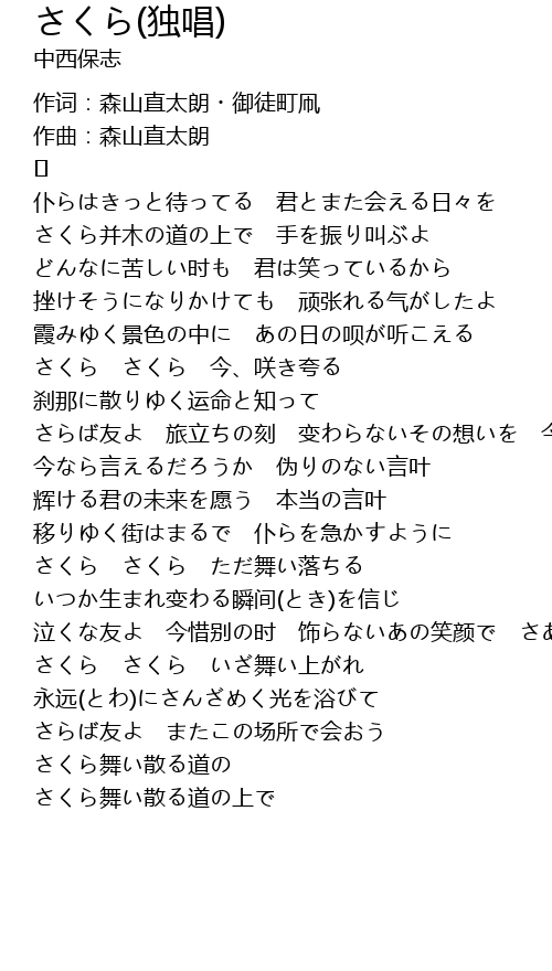 | さくら并木の道の上で 手を振り叫ぶよ | |