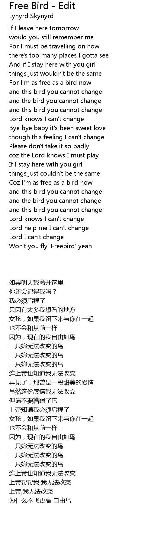 Won't you fly' Freebird' yeah |