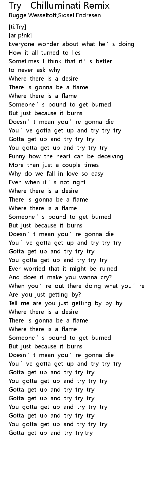 | [03:02.439] | You ' ve gotta get up and try try try |