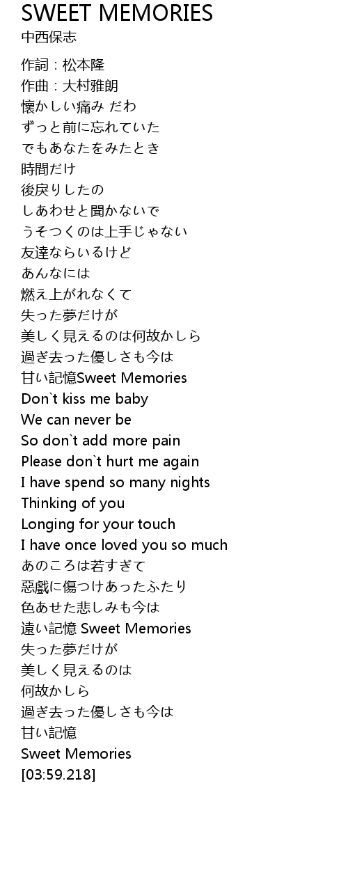| [01:33.060] | 甘い記憶Sweet Memories |