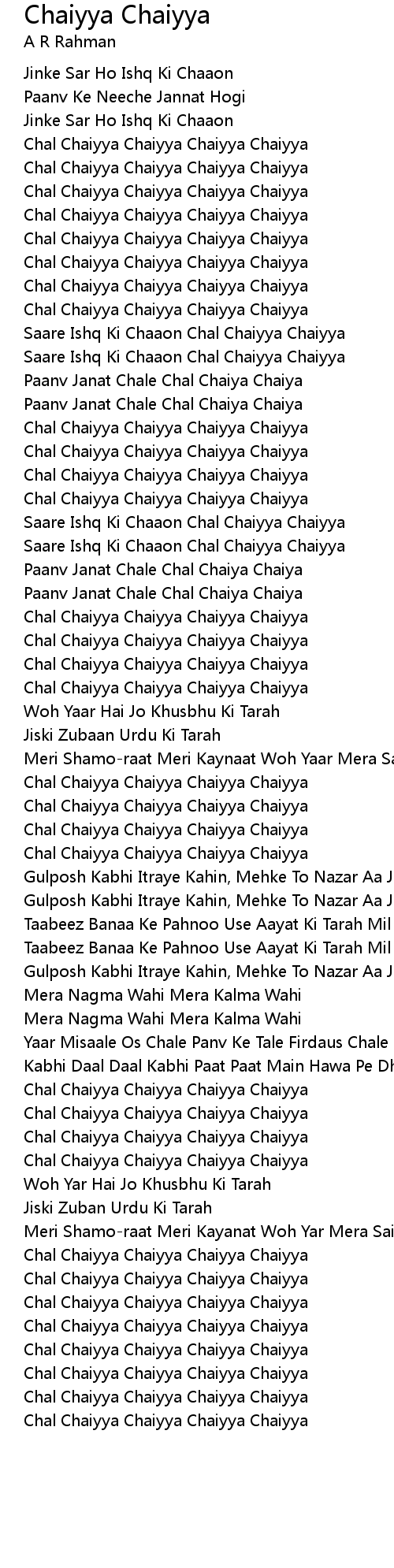 Chal Chaiyya Chaiyya Chaiyya Chaiyya |