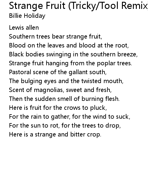 | Song | Strange Fruit (Tricky/Tool Remix) |