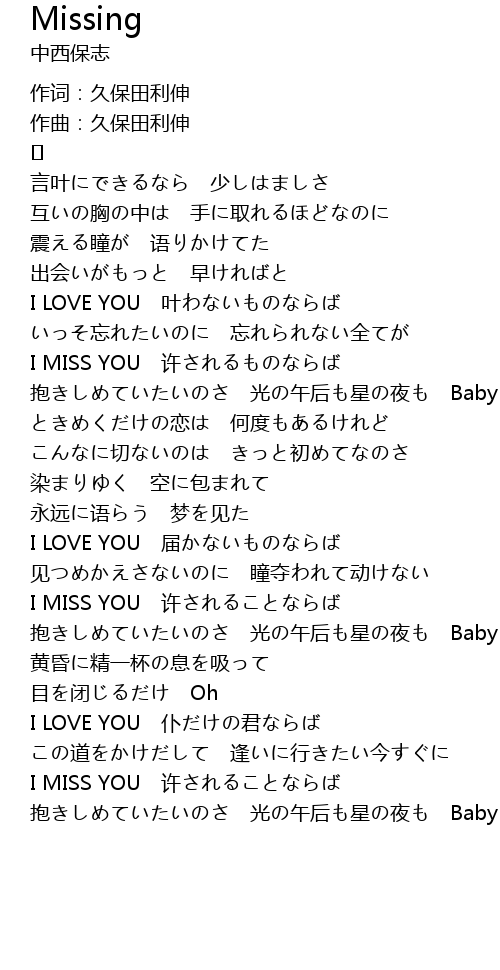 | 抱きしめていたいのさ 光の午后も星の夜も Baby | |