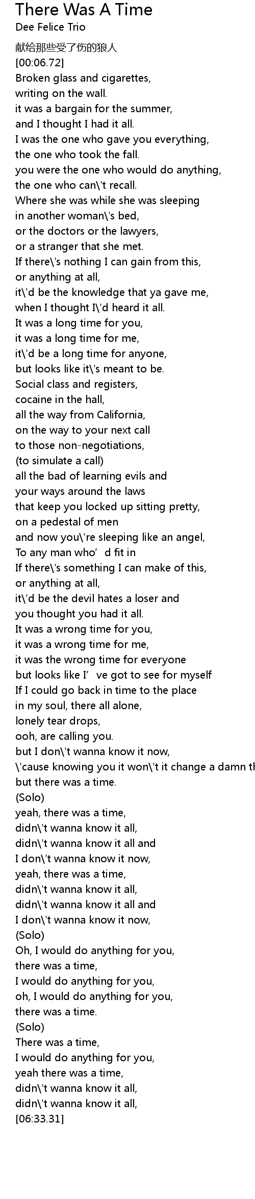 | [02:22.54] | ' cause knowing you it won' t it change a damn thing. |