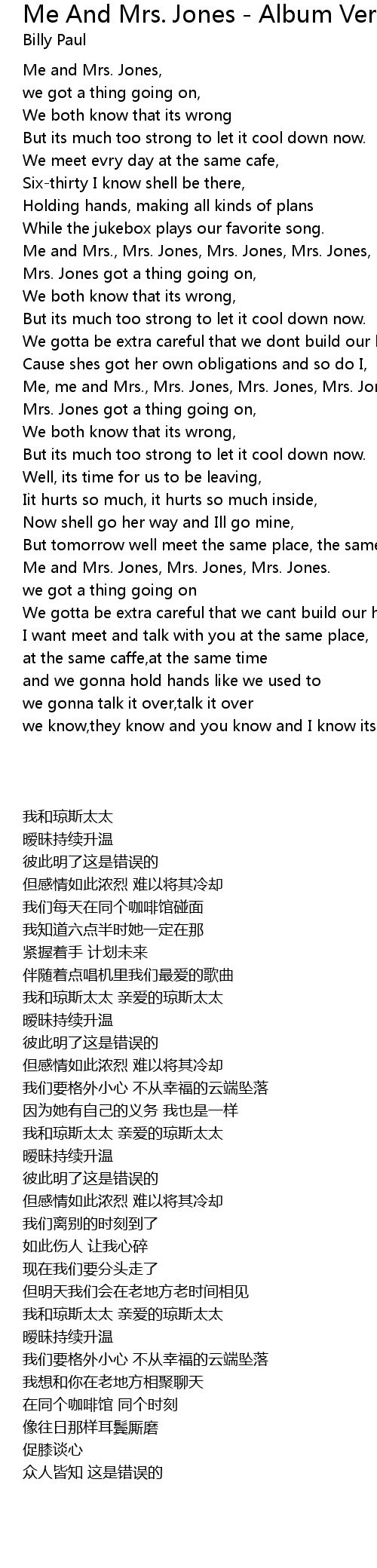 Me and Mrs., Mrs. Jones, Mrs. Jones, Mrs. Jones, |
