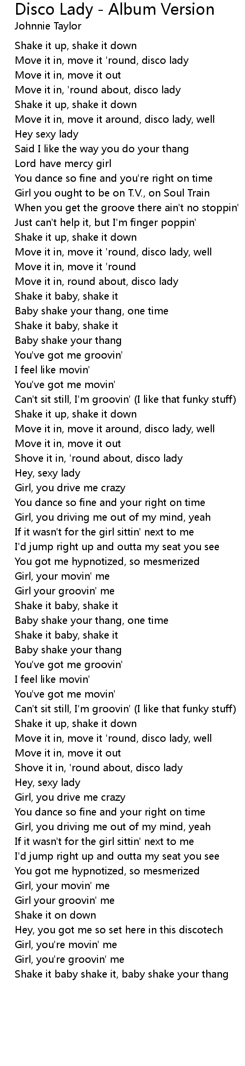 Move it in, round about, disco lady |