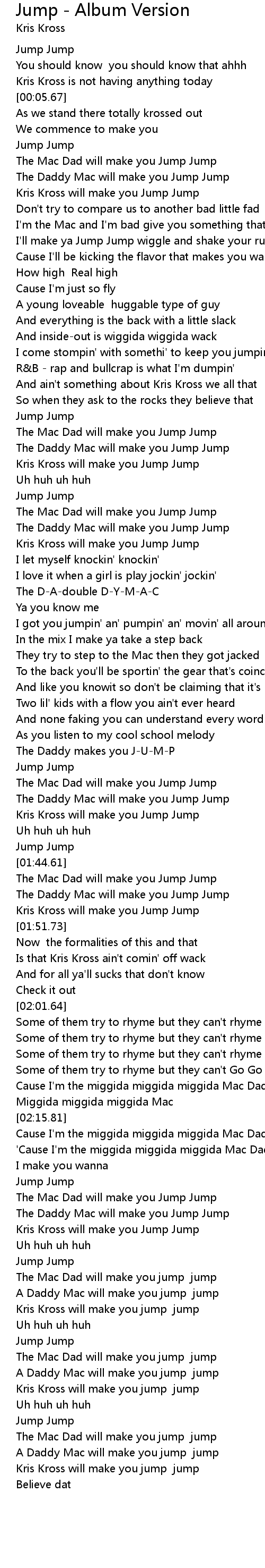 [01:40.40] Kris Kross will make you Jump Jump