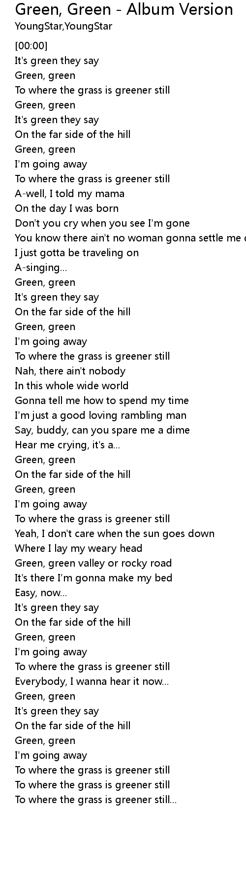 | [00:43.20] | Green, green |