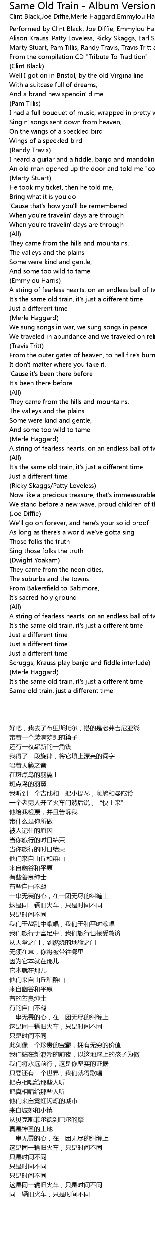 Performed by Clint Black, Joe Diffie, Emmylou Harris, Merle Haggard, |