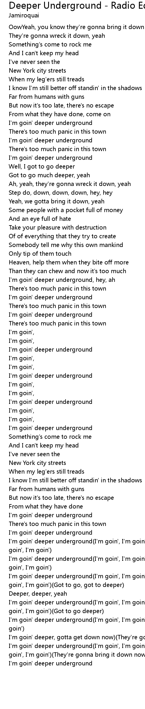 I'm goin' deeper underground(I'm goin', I'm goin', I'm goin', I'm goin', I'm goin', I'm goin')(Got to go deeper) |