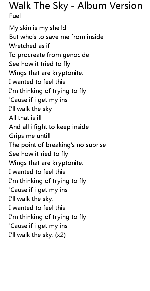Walk The Sky - Album Version Lyrics