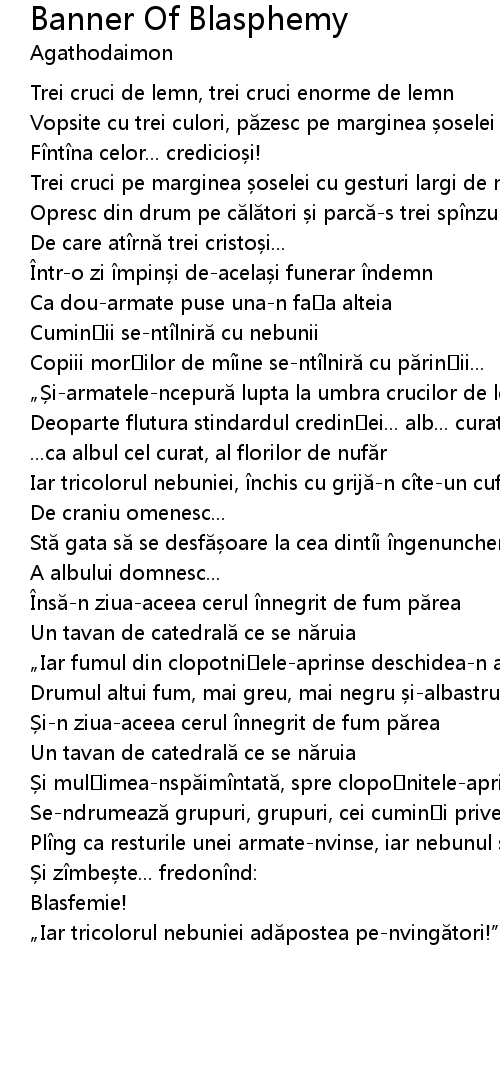 | Deoparte flutura stindardul credin ei... alb... curat..." | |