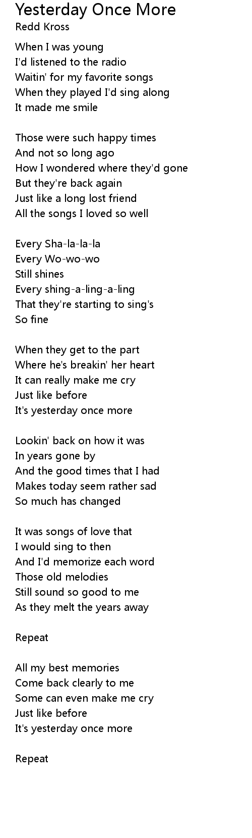 It's yesterday once more |