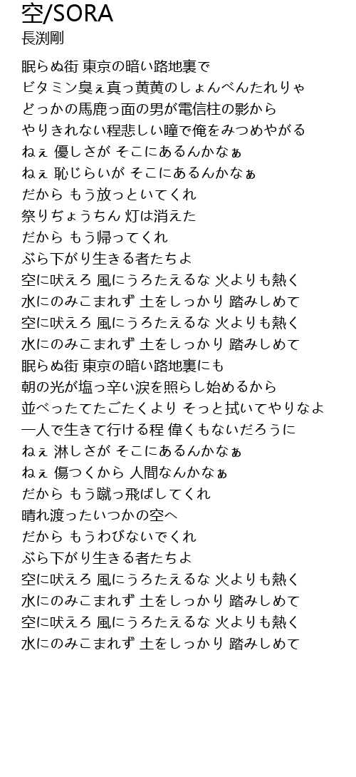 | 空に吠えろ 風にうろたえるな 火よりも熱く | |