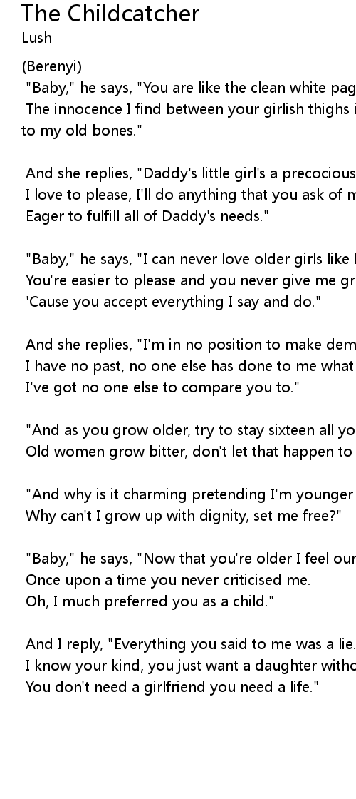 "Baby," he says, "Now that you're older I feel our love has died. |