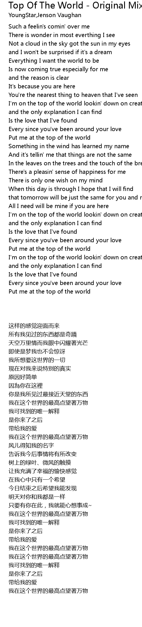 [00:58.260] I'm on the top of the world lookin' down on creation