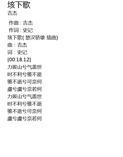 | [00:01.64] | 垓下歌( 楚汉骄雄 插曲) |