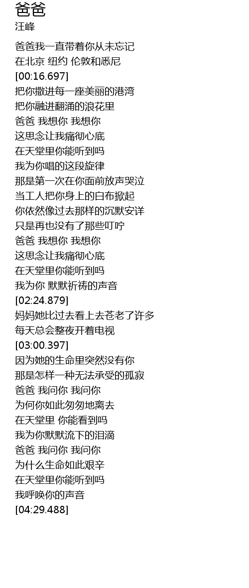 | [01:48.488] | 爸爸 我想你 我想你 |