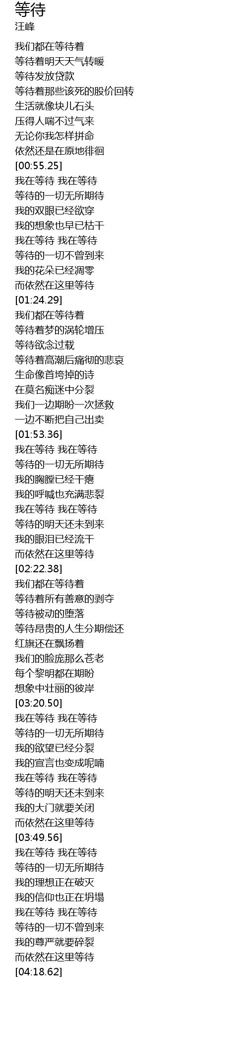 | [00:56.39] | wǒ zài děng dài wǒ zài děng dài |