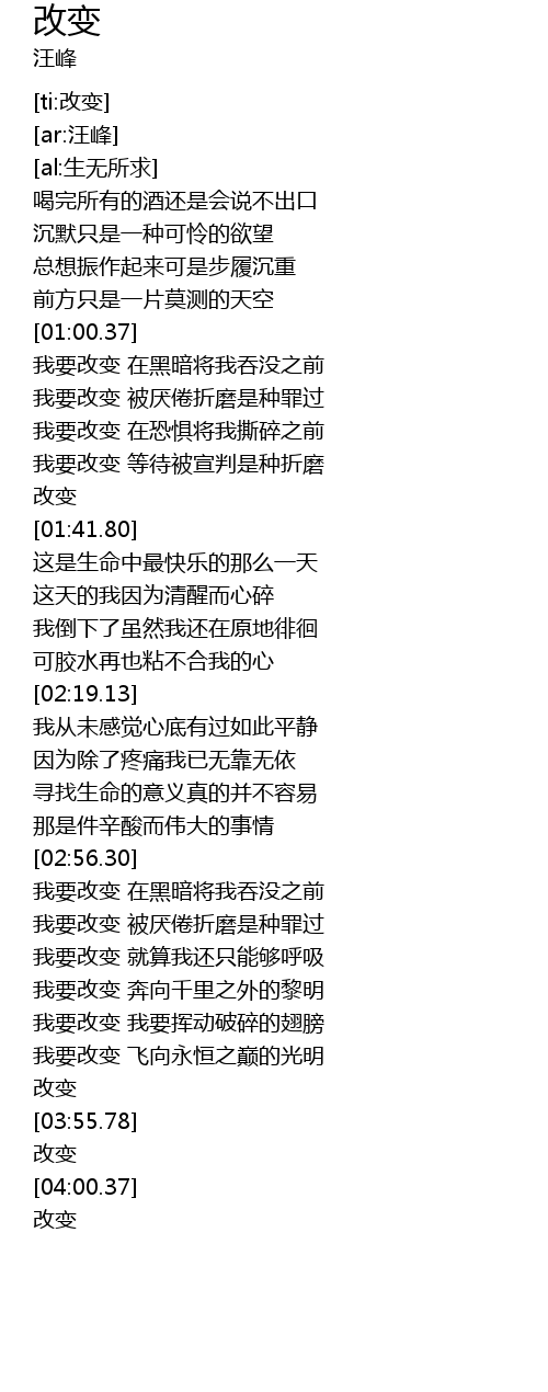 | [03:57.81] | 改变 |