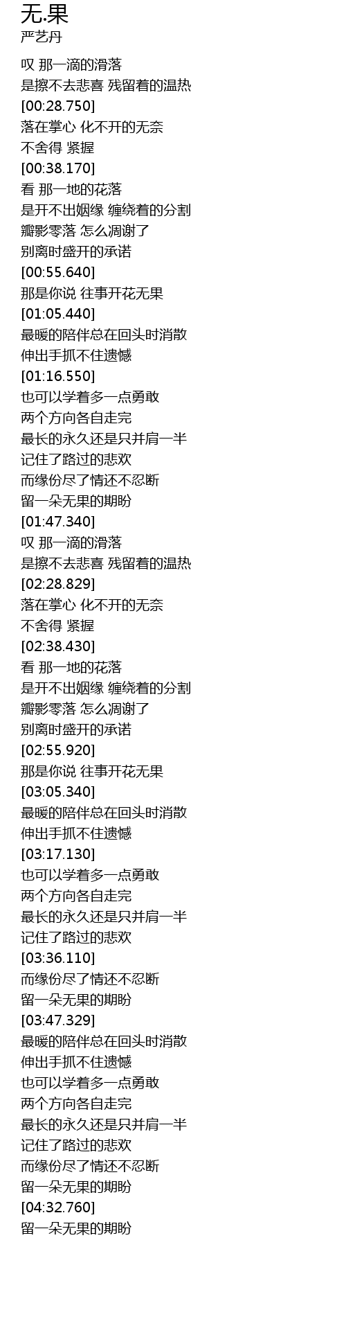 | [04:28.830] | 留一朵无果的期盼 |