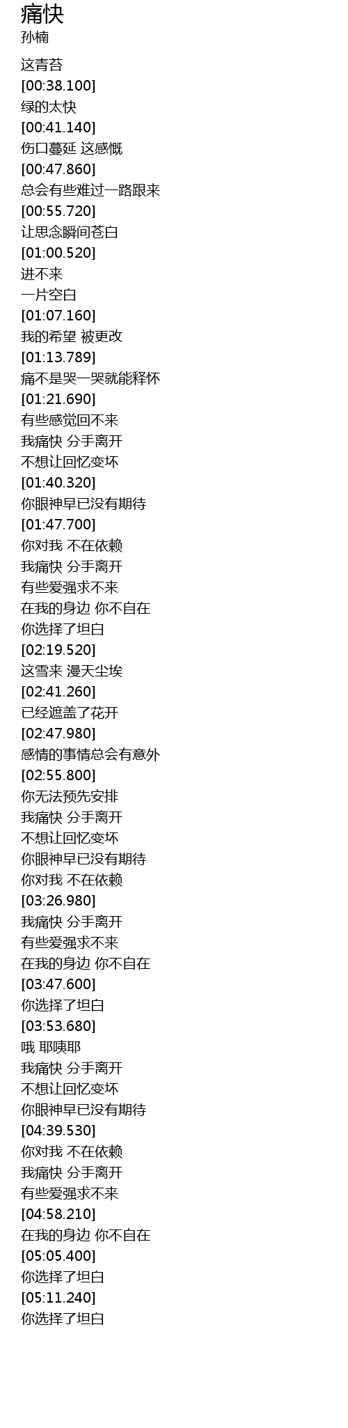 | [01:53.910] | 我痛快 分手离开 |