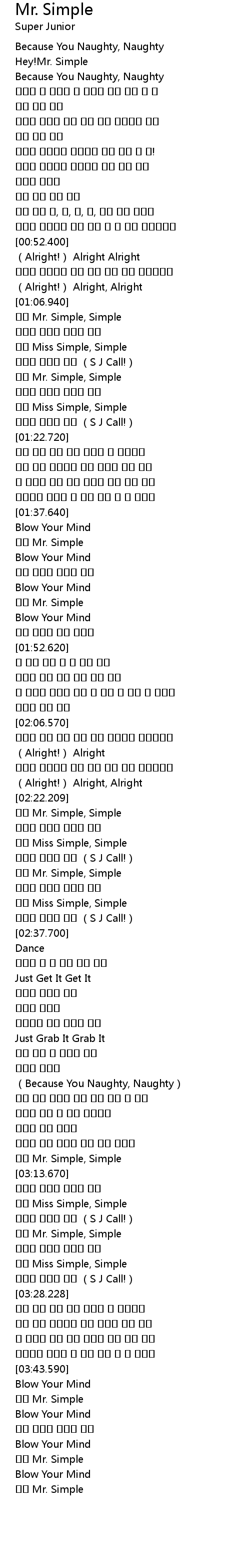 | [03:21.290] | 봐라 Mr. Simple, Simple |