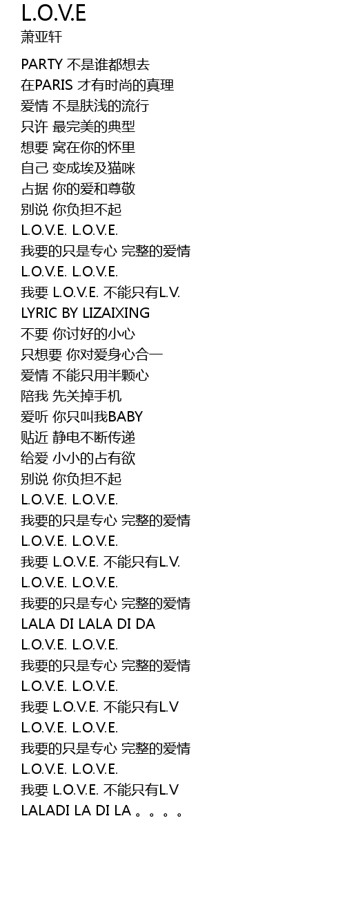 | [02:53.71] | 我要 L.O.V.E. 不能只有L.V |