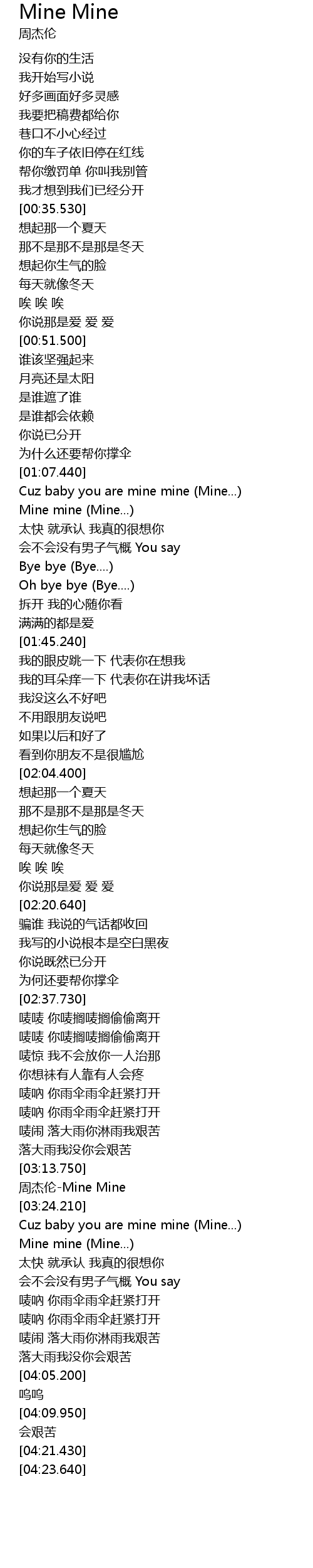 | [03:17.110] | 周杰伦-Mine Mine |