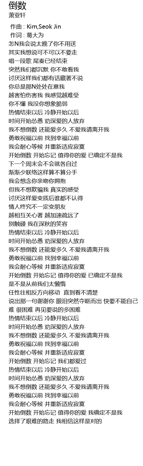 | [03:38.11] | 开始倒数 开始忘记 值得你的爱 我确定不是我 |