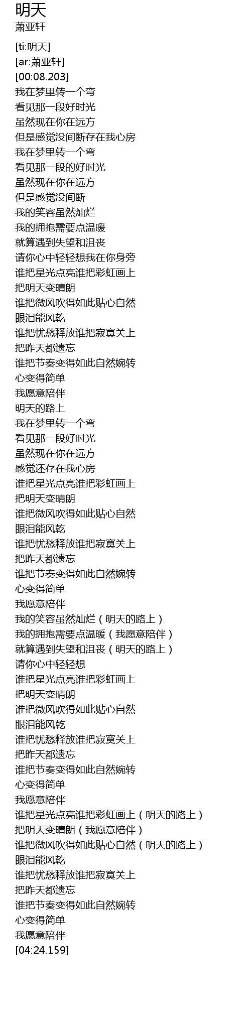 | [03:59.596] | 把明天变晴朗(我愿意陪伴) |