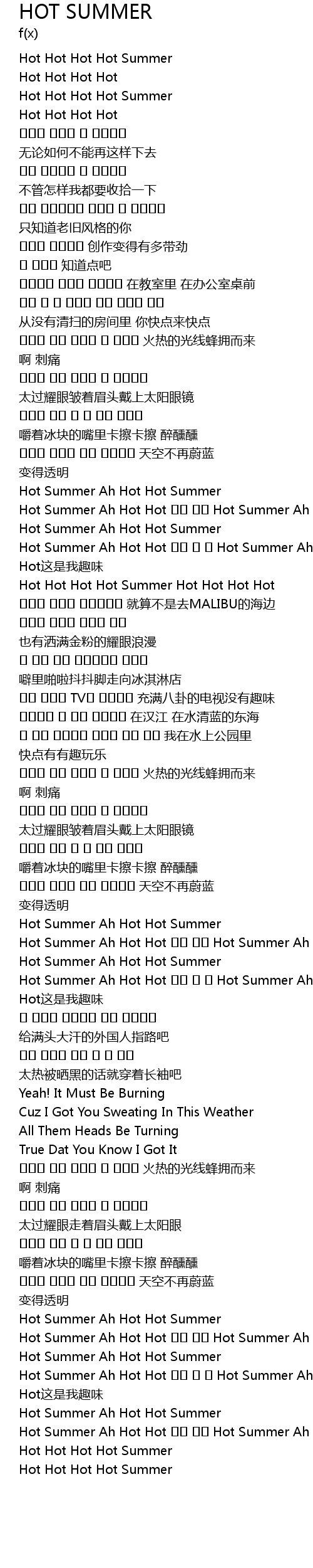 | [02:21.600] | Hot Summer Ah Hot Hot Hot Summer Ah Hot Hot fei chang de re |