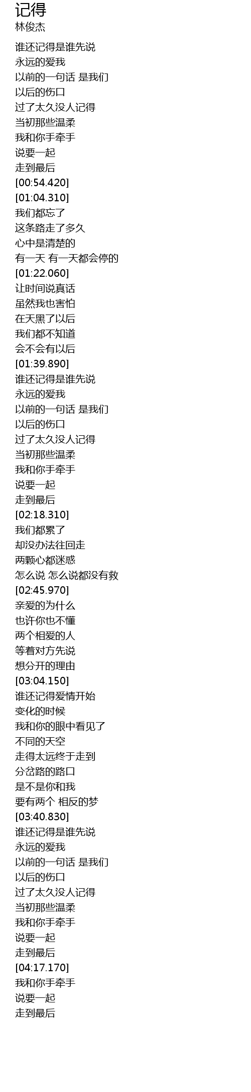 | [00:17.220] | shuí hái jì de shì shuí xiān shuō |