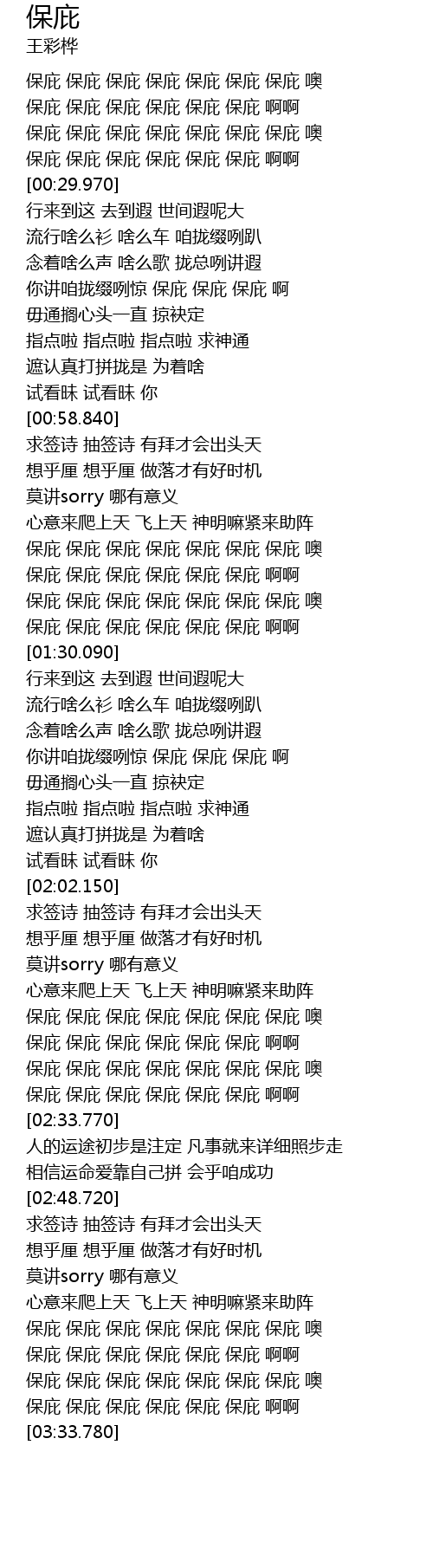 | [03:18.660] | 保庇 保庇 保庇 保庇 保庇 保庇 保庇 噢 |