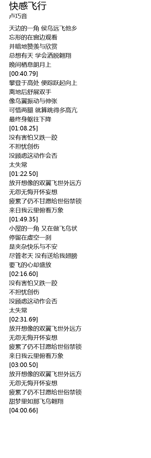 | [00:52.64] | 像鸟翼振动与伸张 |