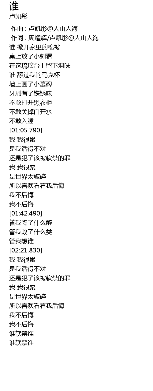 | [00:00.00] | 作曲 : 卢凯彤@人山人海 |