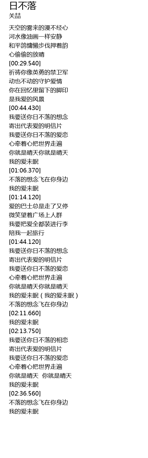 | [02:23.180] | 我要送你日不落的爱恋 |