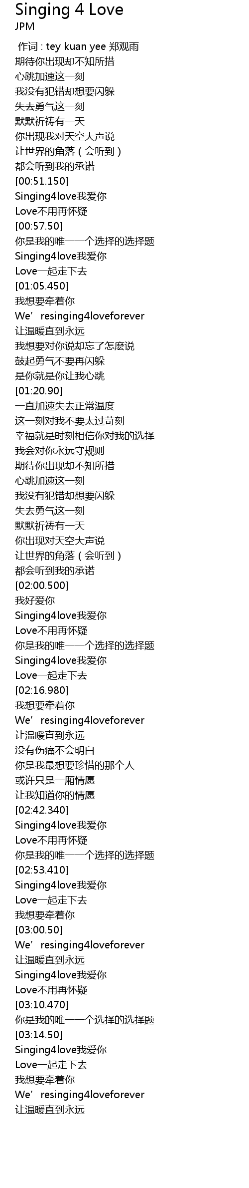 | [03:00.630] | We’resinging4loveforever |