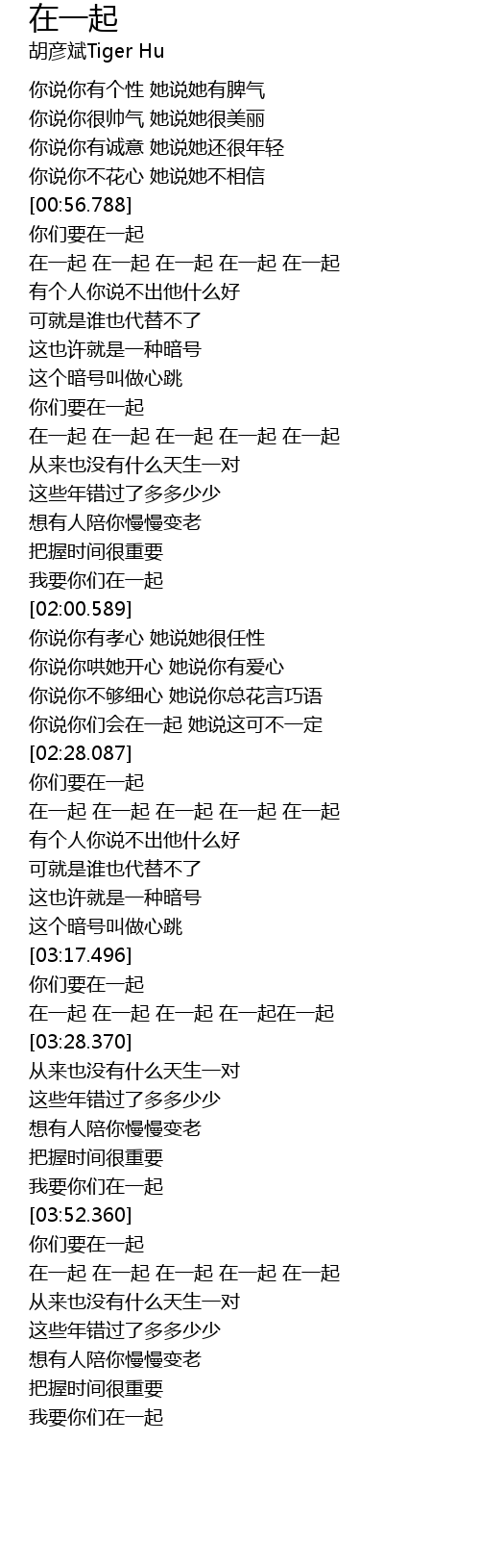 | [03:53.360] | 在一起 在一起 在一起 在一起 在一起 |