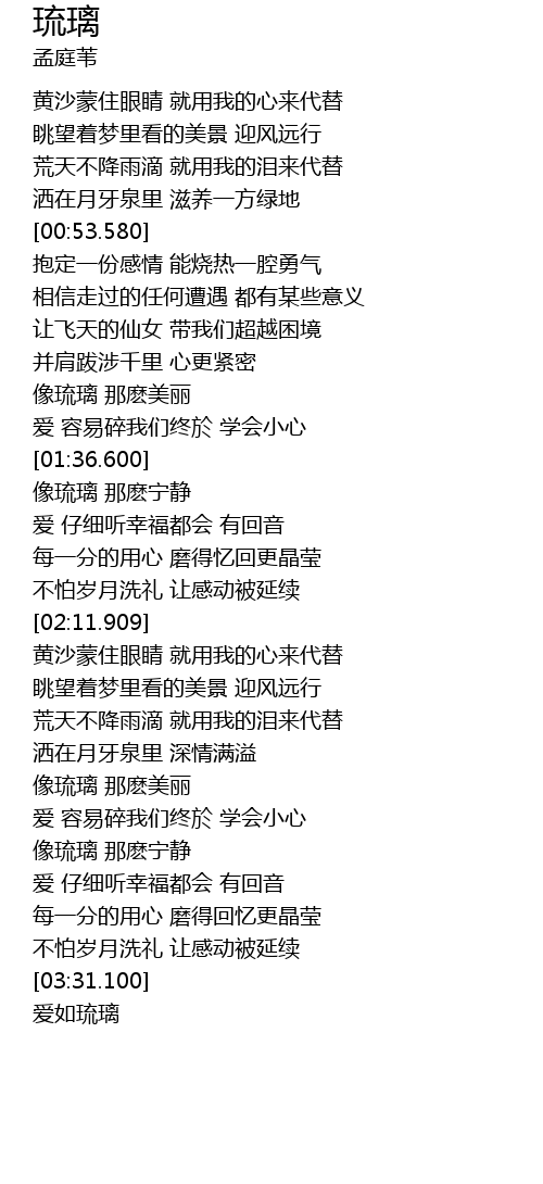 | [03:01.490] | 像琉璃 那麽宁静 |